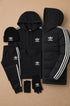 — Anthony K.Discover the perfect balance of comfort, design, and sporty elegance with this complete Adidas tracksuit. Comprising a hoodie, quilted vest, joggers, a t-shirt, and a matching cap, this kit embodies a modern and refined look, ideal for all seasons.