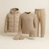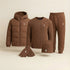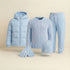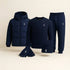 Comprising a Sweater, a Winter Puffer, a Cap, a pair of Gloves, it embodies a modern, refined, and timeless look.
